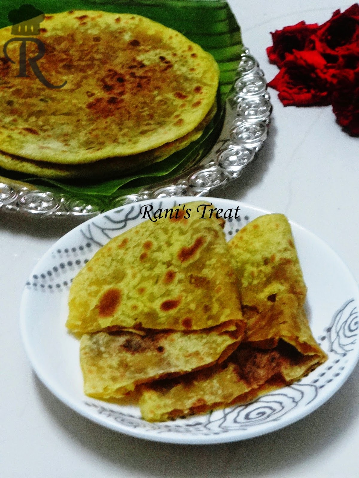 - Cook on both sides on high flame, flipping it now and then, by applying ghee on both sides and till it gets cooked completely.